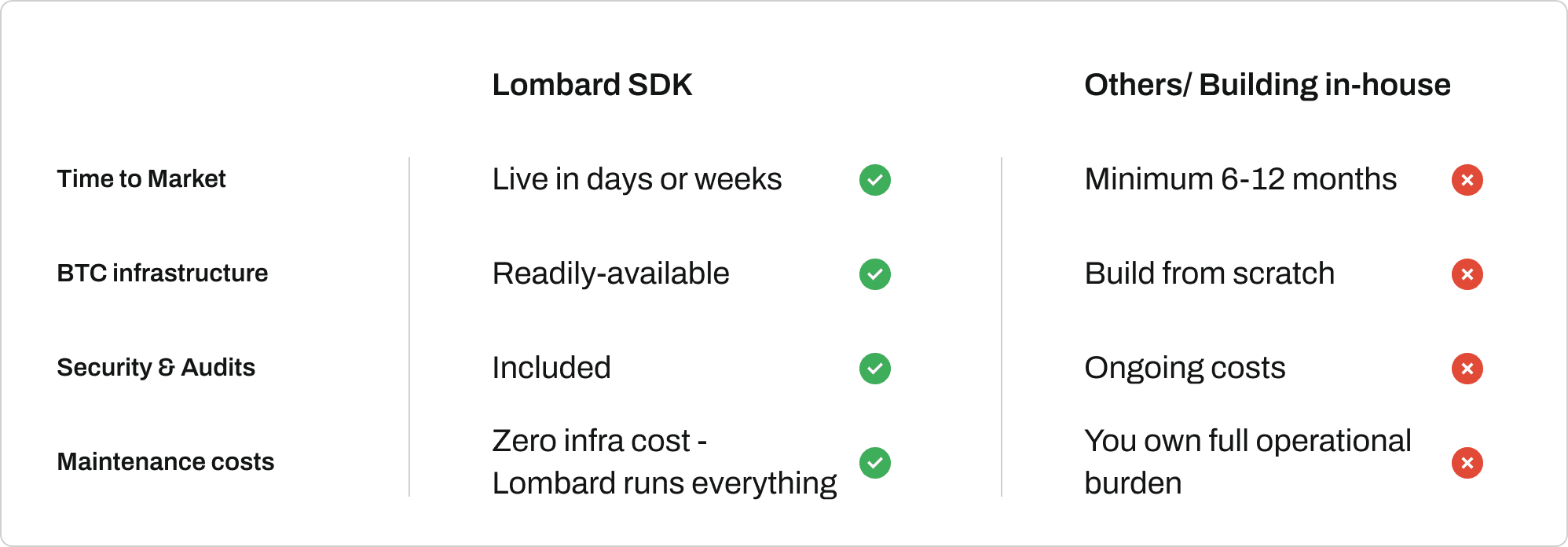 Teams integrating the Lombard SDK inherit these security guarantees by default, without building or maintaining them in-house.